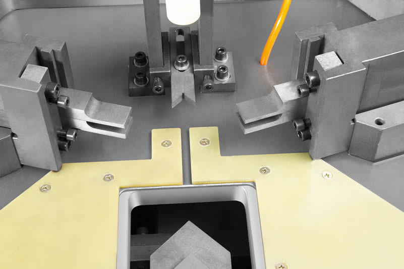 适用于高质量要求的隔热型材框料、大型扇料、门料和超厚幕墙料的组角双层可调刀座同时完成双层角码不同位置的组角